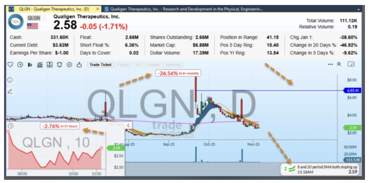 This integration matters because traditional platforms force inefficient workflows: open a chart to see price action, switch to a screener for fundamental data, check a separate window for volume analysis, pull up float and short interest elsewhere, then cross-reference with scanner results. By the time you’ve gathered all this confirmation data scattered across five different tools, the opportunity has disappeared, and the entry you wanted no longer exists. On the other hand, Trade Ideas’ approach delivers everything at a glance: