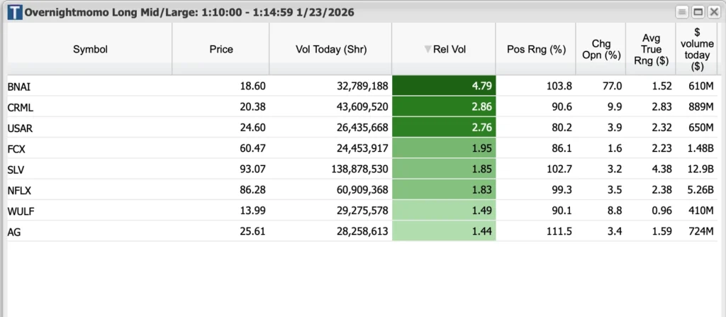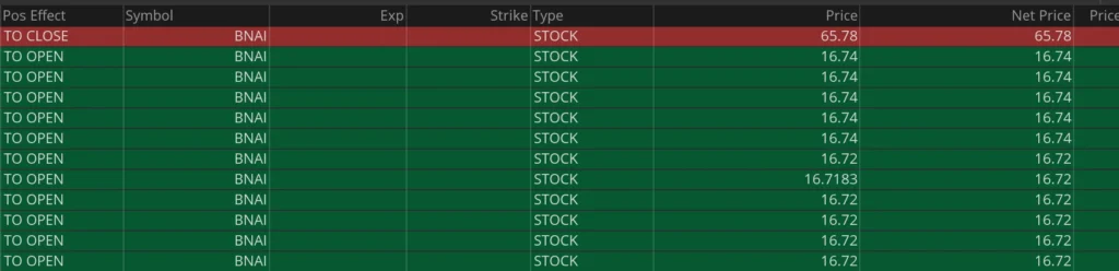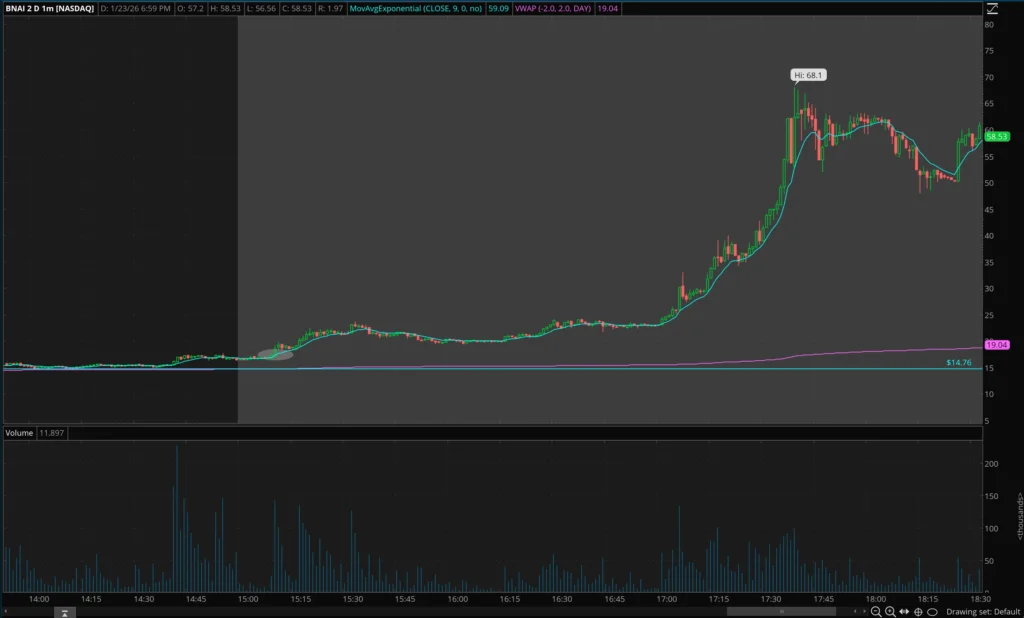 To illustrate, consider a trade I took on January 23rd, 2026, involving $BNAI, a stock that had been gaining attention since December.