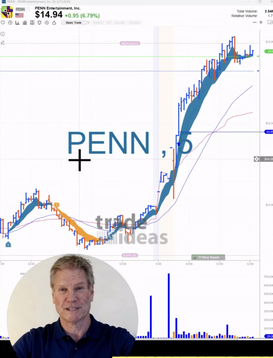 Hello everyone, Barry Anderson here from Trade Ideas, breaking down a setup that really caught my attention today — PENN…
