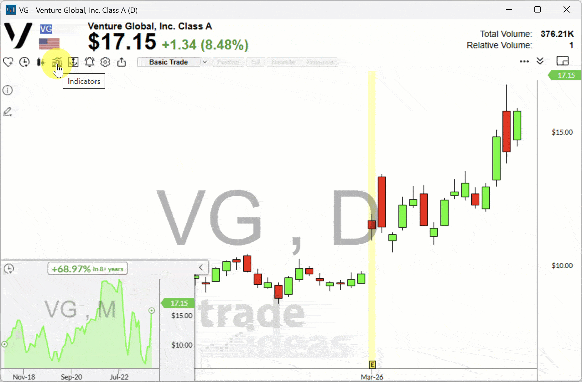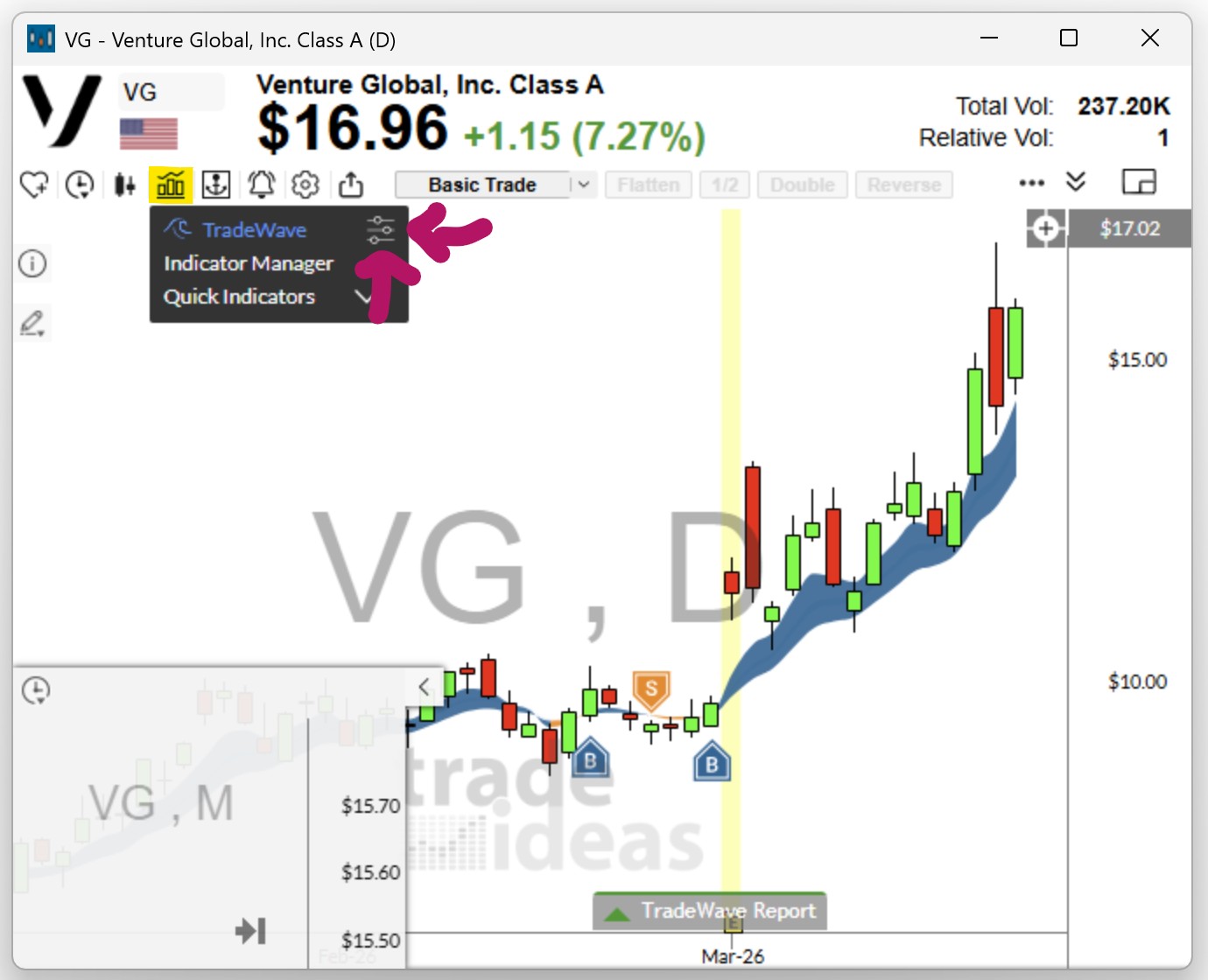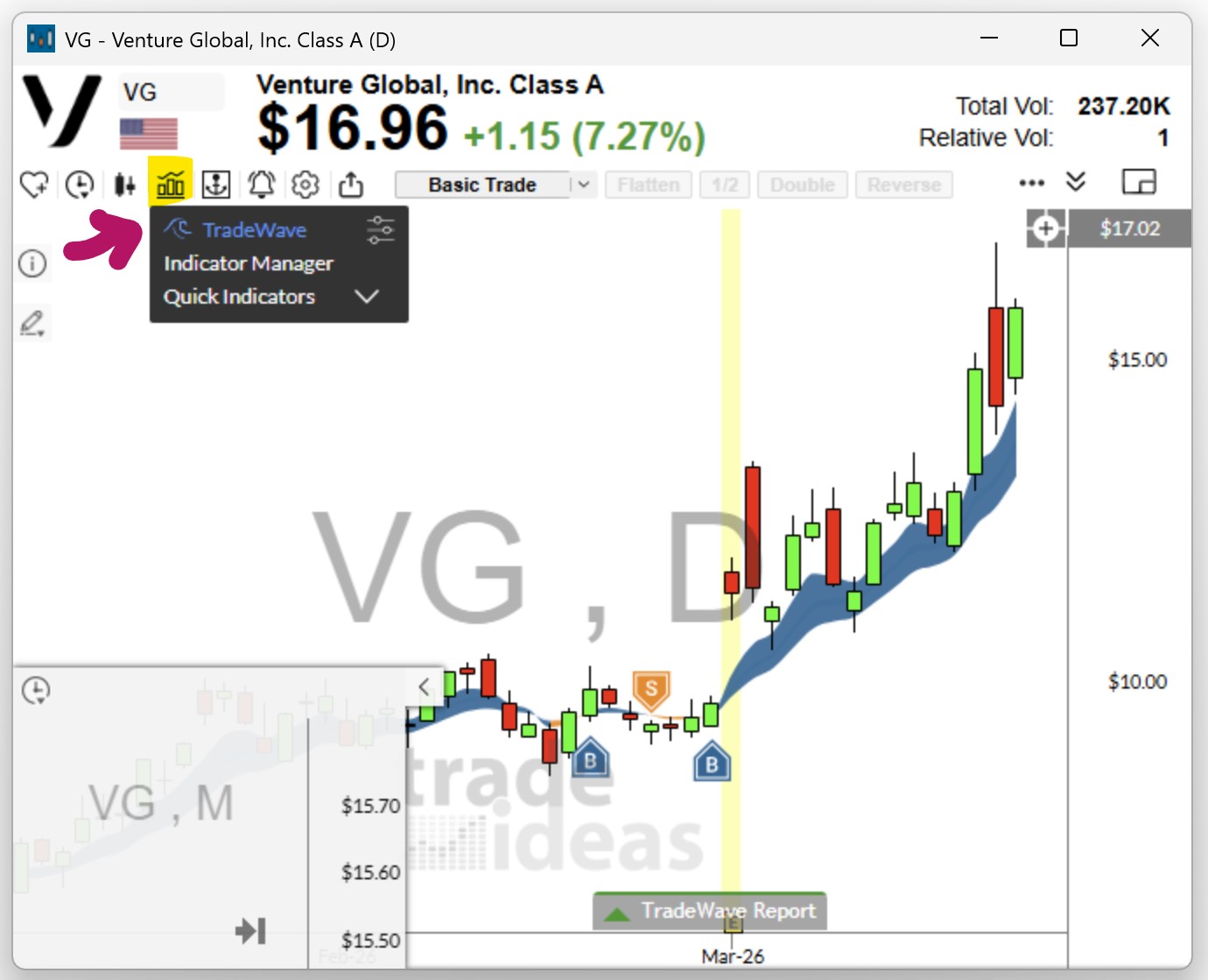 To add TradeWave Buy and Sell signals to your chart, click the bar icon and select TradeWave from the list.